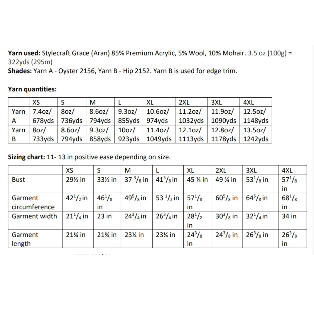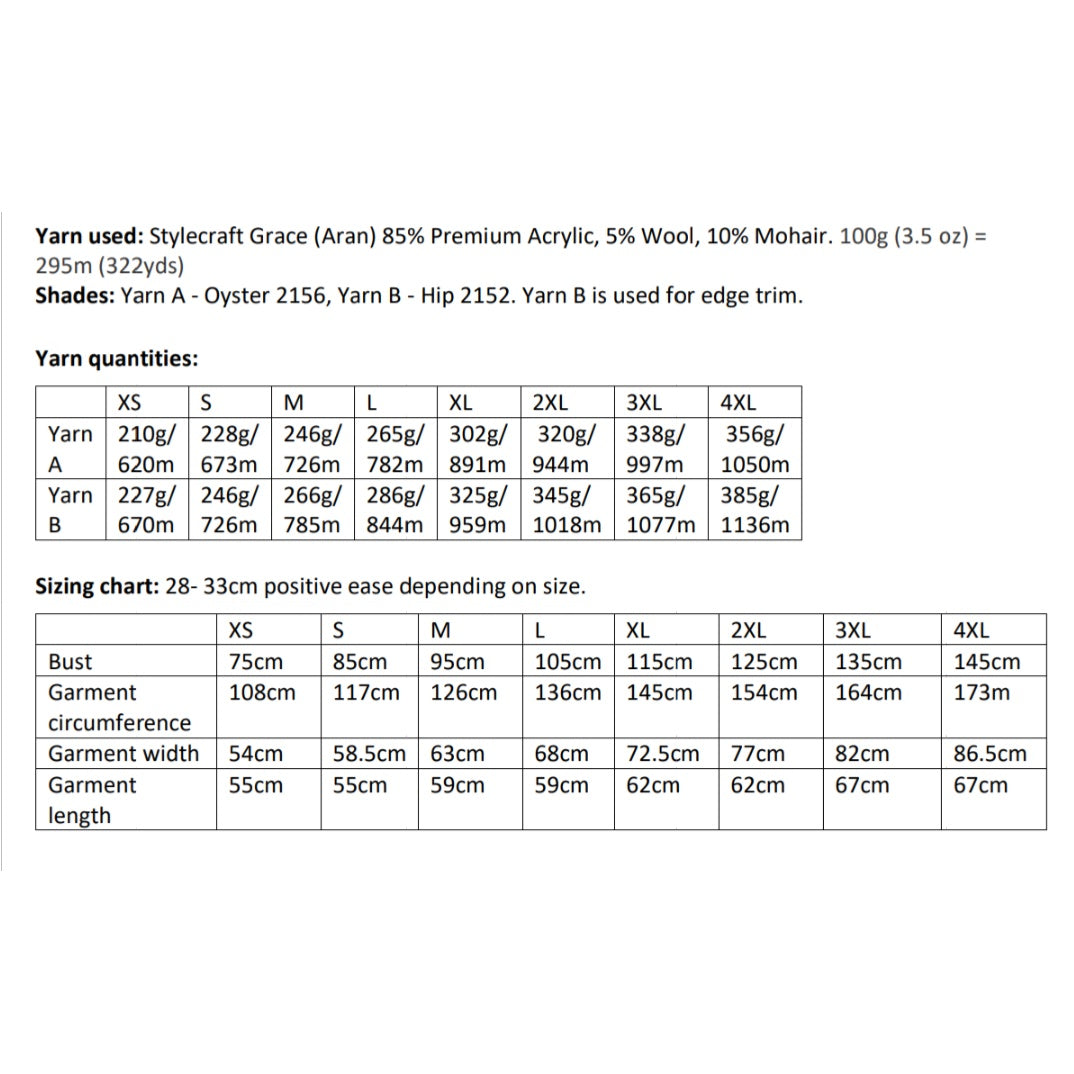 The pattern is intermediate level, comes in 8 sizes with 3 sleeve lengths and is written in UK & US crochet terms. It includes schematics, step photos and diagrams to help. Pattern support is available at ironlambdesigns@gmail.com or via the contact form.