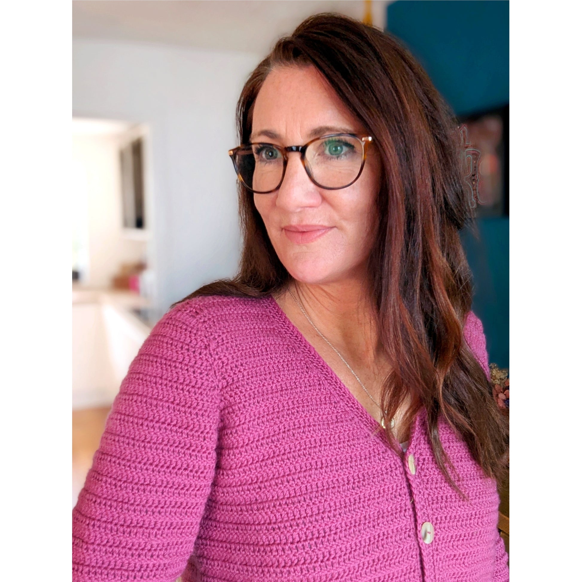 The Lunar is a classic V-neck cardigan with flattering set in sleeves that works up quickly in snuggly Yarnsmiths Merino DK. This yarn is on the thicker end of the DK spectrum, which gives the cardigan its nice lofty structure, so its worth bearing that in mind when choosing a substitute yarn.