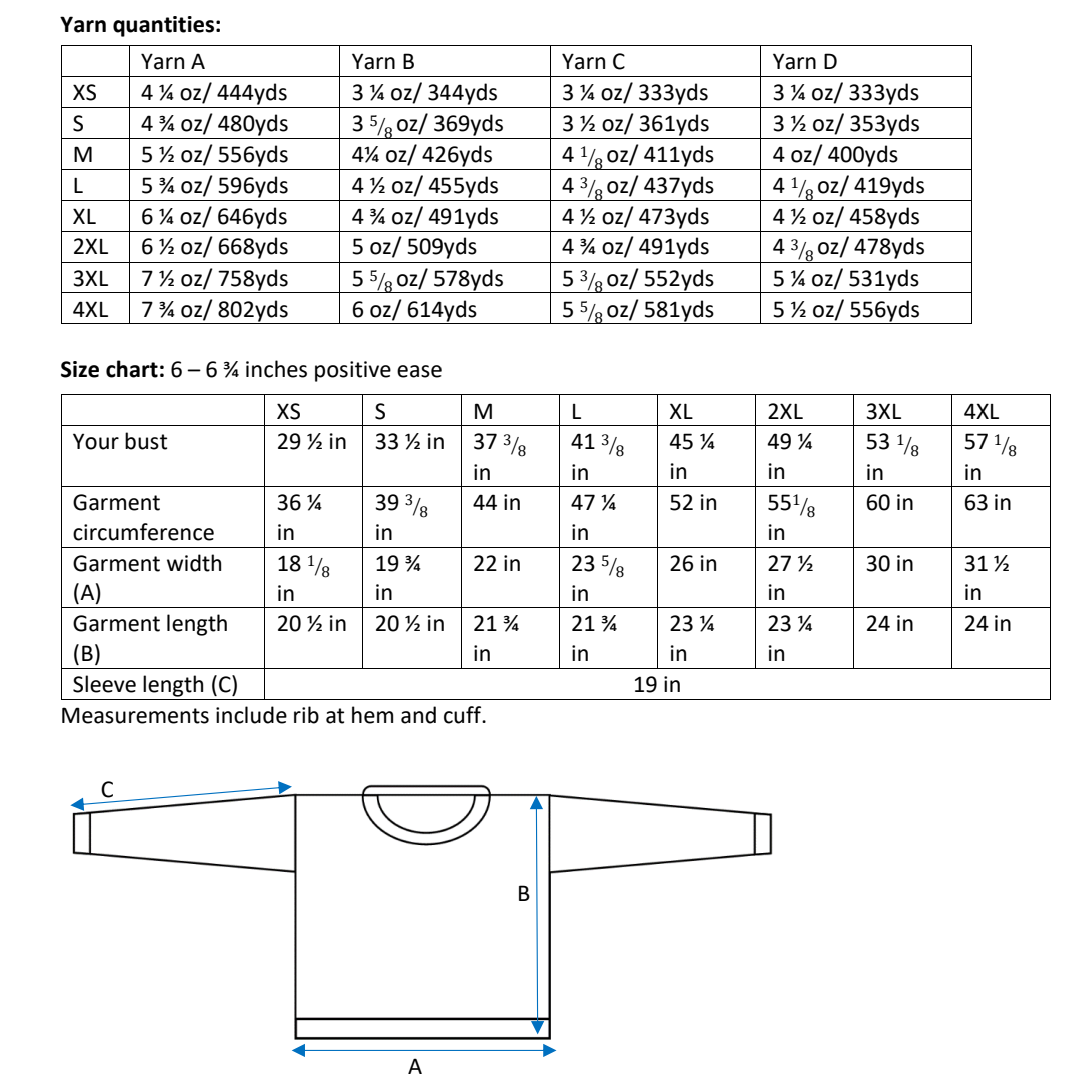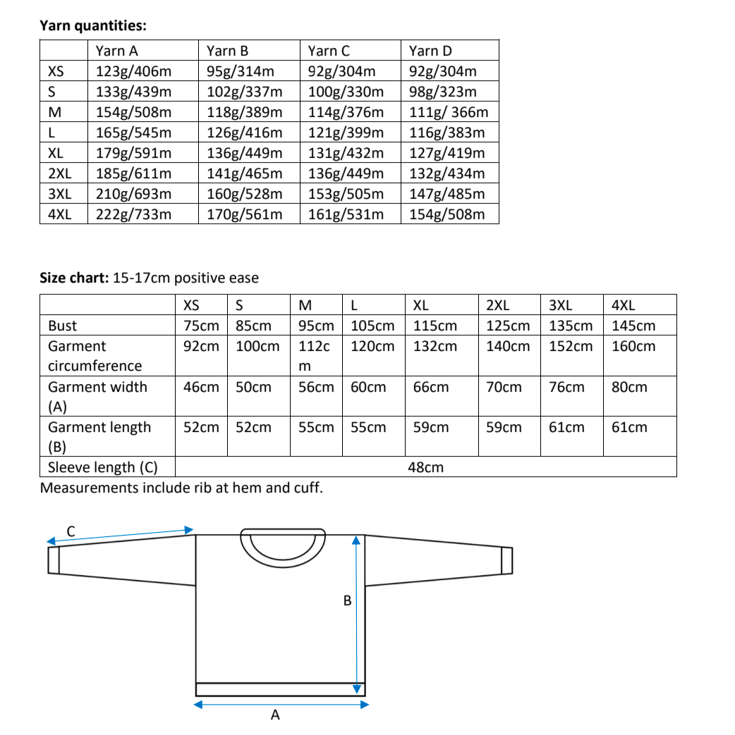The patchwork jumper uses DK yarn with a tension (gauge) of 5 groups to 10cm/4in. It is available in both UK and US crochet terms. It is intermediate level. It comes in 8 sizes (see photos for sizing and yarn quantities). Although it doesn't have step photos, it is clearly explained and simple to follow. It is made from the bottom up in separate panels and sewn together at the end. The drop sleeves are worked in the round. The body and sleeve length can be easily modified by adding or removing rows as you go.