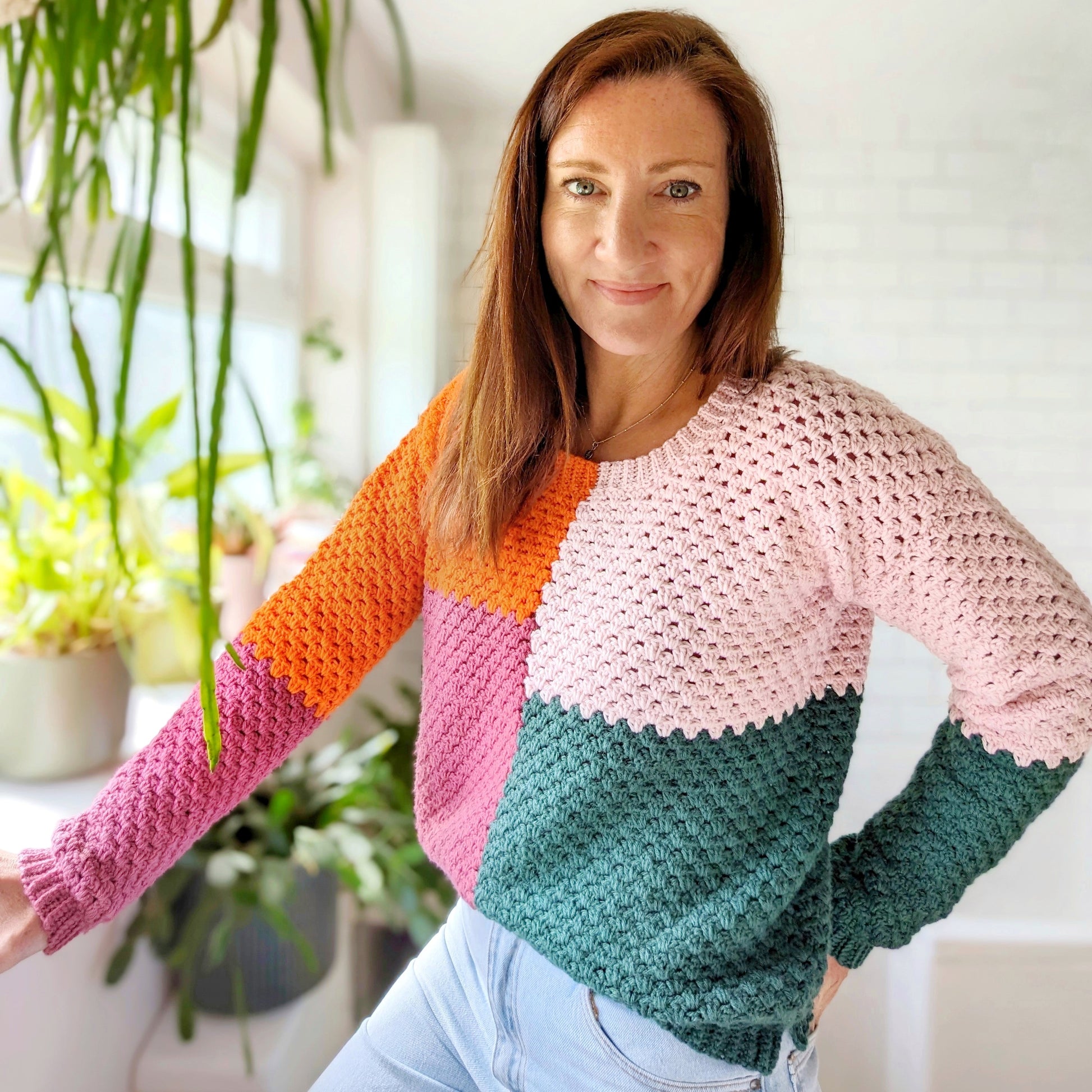 Pick your four favourite colours and go to town with this stylish patchwork-effect jumper. This simple, boxy style with minimal shaping allows the colours to do the talking.