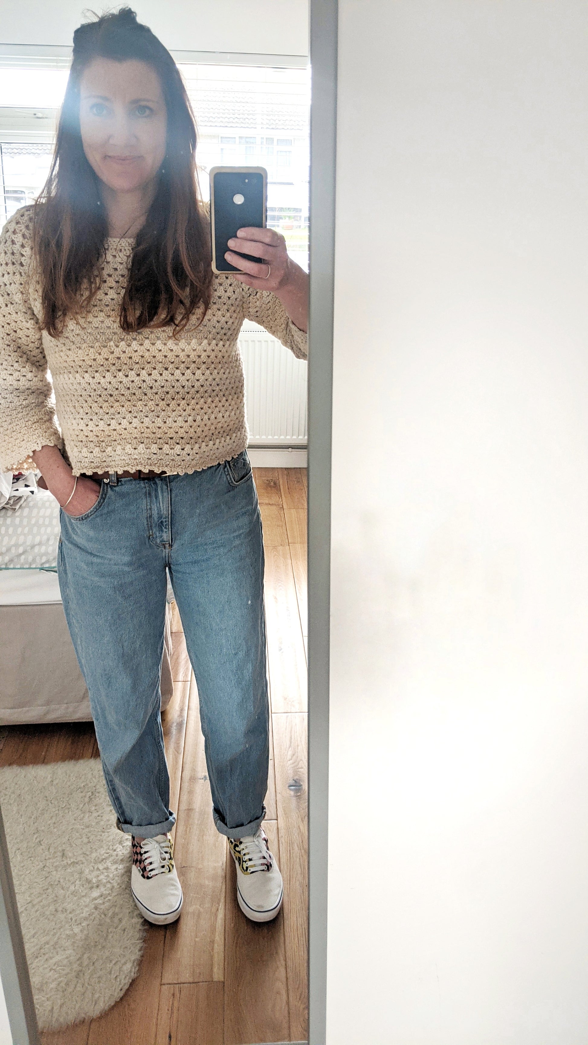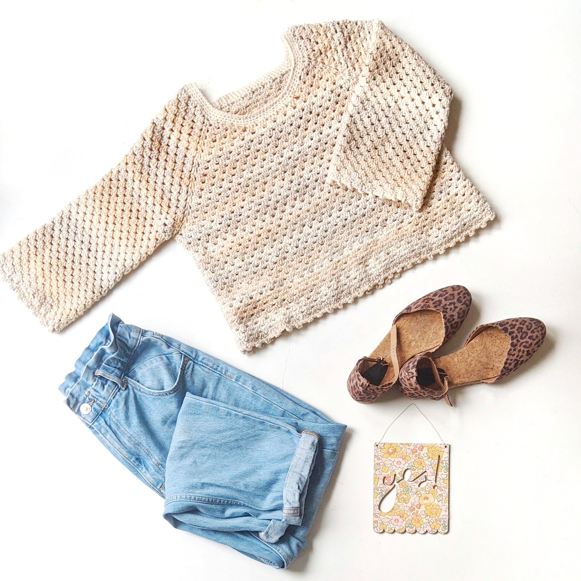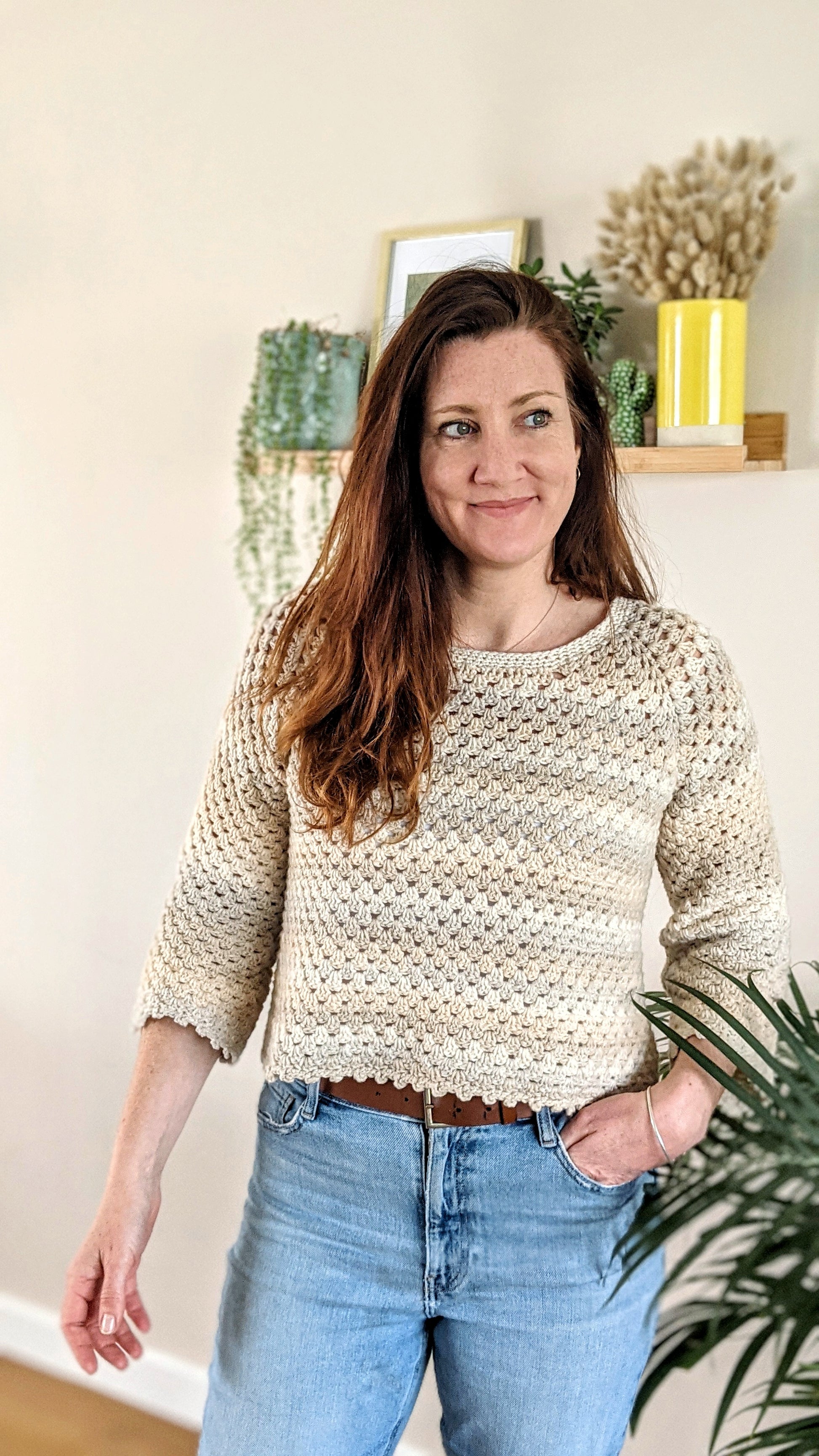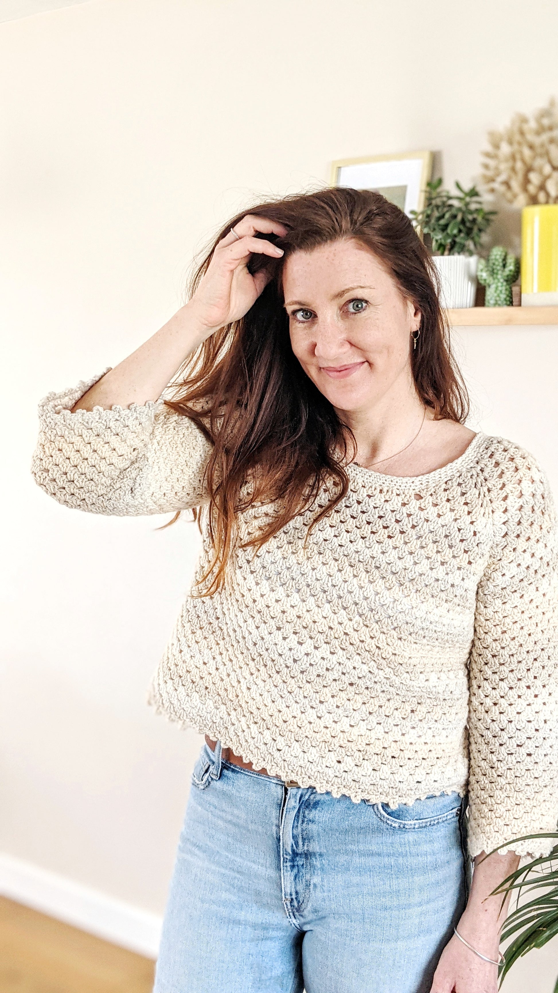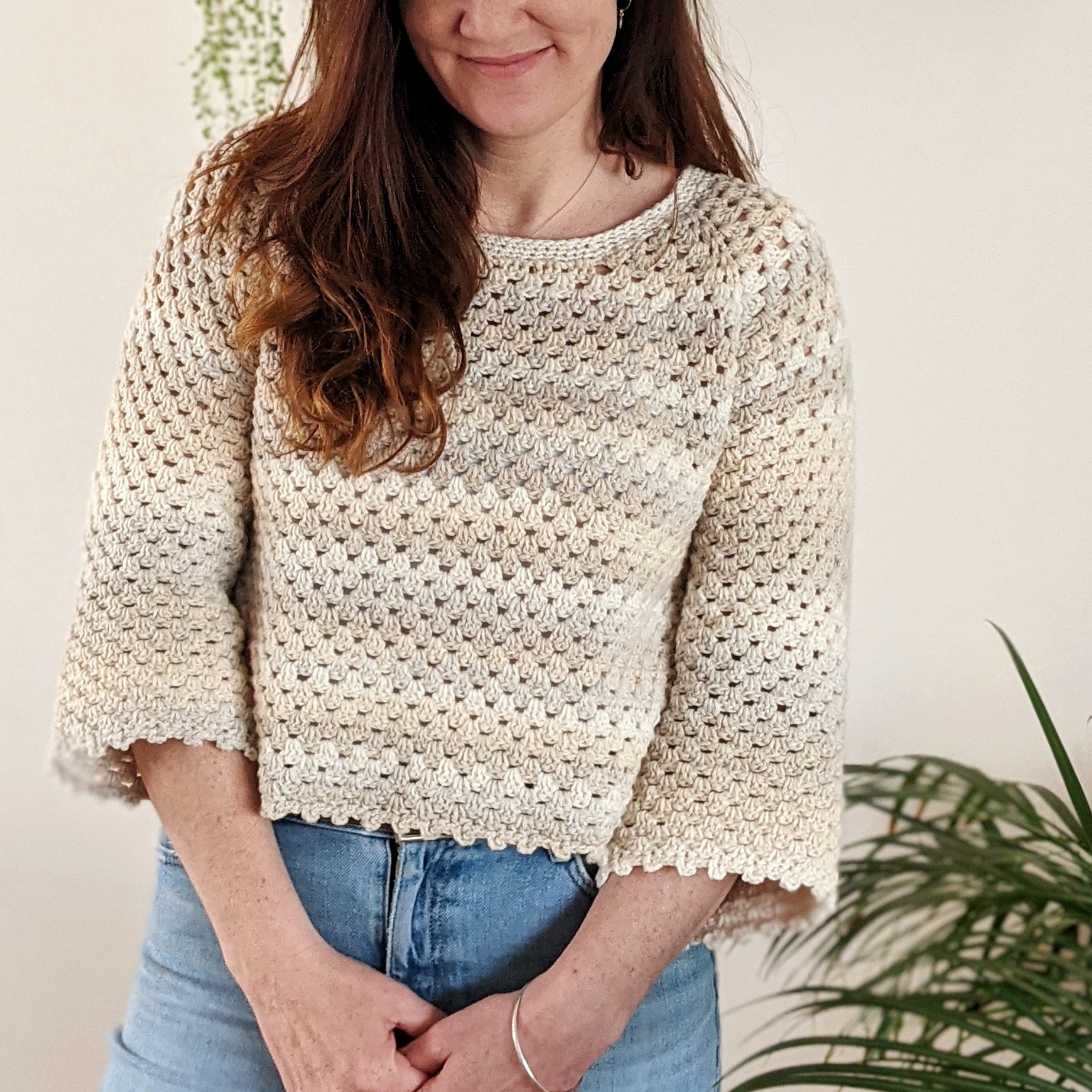 Worked from the top down in granny stitch on a 4mm hook, it hooks up in no time and there are endless style combintations. It can easily be extended into a longer top or dress, the sleeves can be left as cap sleeves and the picot trim can be omitted for a minimal finish. There are also suggestions on how to taper the waist for a slimmer fit.